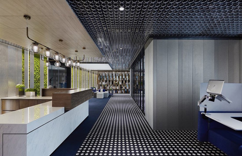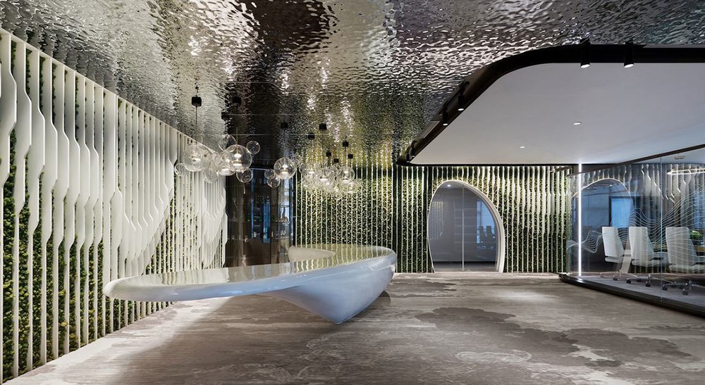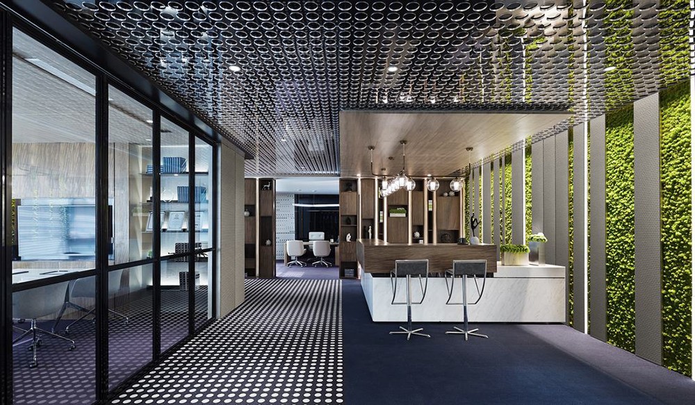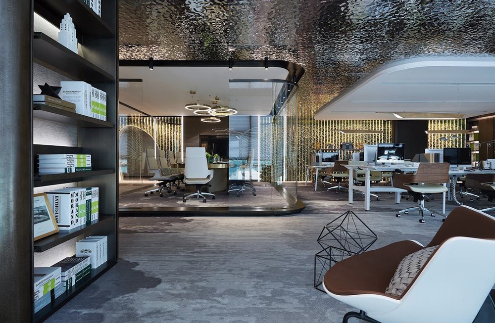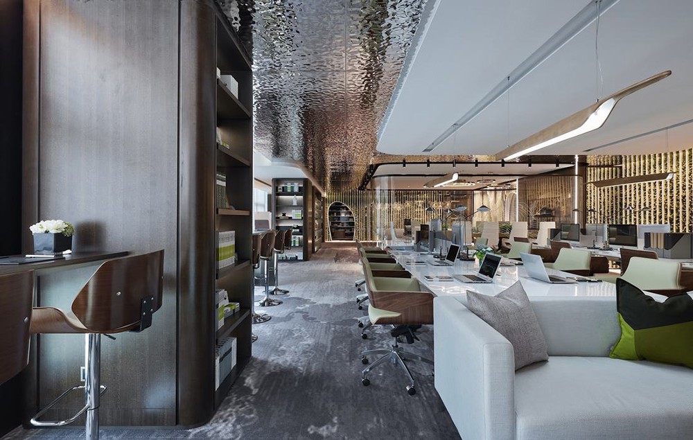 本案整體設計風格是現(xiàn)代簡約,結合原有建筑結構與甲方的功能需求,進行合理的布局。采用了大量的不銹鋼,玻璃,地毯、亞麻地板等新型現(xiàn)代的材料,營造了一種廣闊的視覺空間環(huán)境,而且還能夠在工作范圍內(nèi)為員工創(chuàng)造一個舒適滿意的個人工作小環(huán)境。