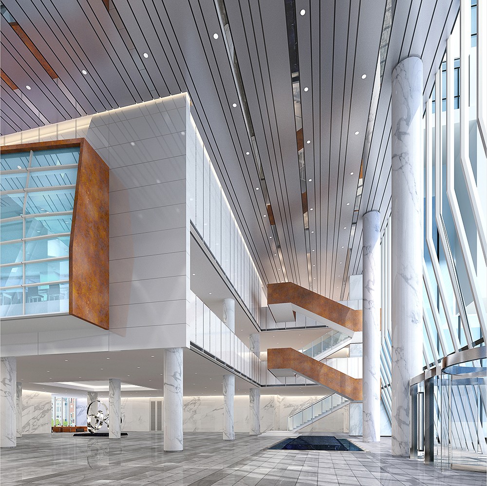 甲級寫字樓,本案方要設(shè)計大堂,共公區(qū)。設(shè)計師由行來特征提取基本元素,如:(鋼)(鐵)通過不同形態(tài)表現(xiàn)方式,采集,積累,提煉,排列讓室內(nèi)裝飾的風(fēng)格多變又統(tǒng)一。金屬自有的質(zhì)感與氣質(zhì)相呼應(yīng),彰顯企業(yè)核心價值觀