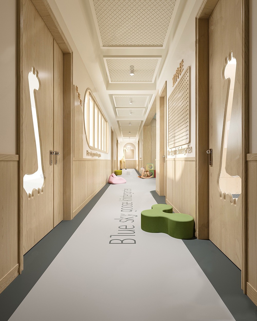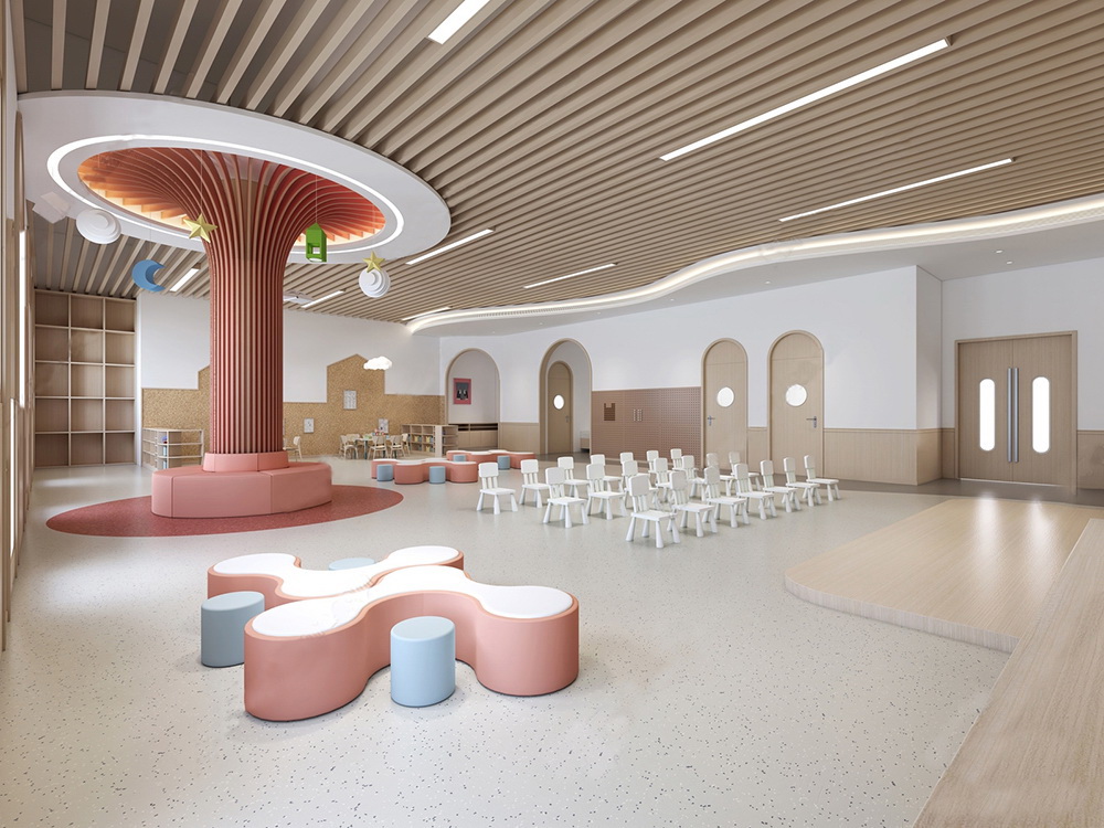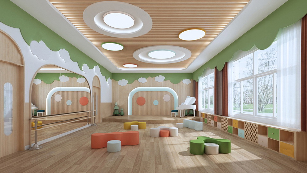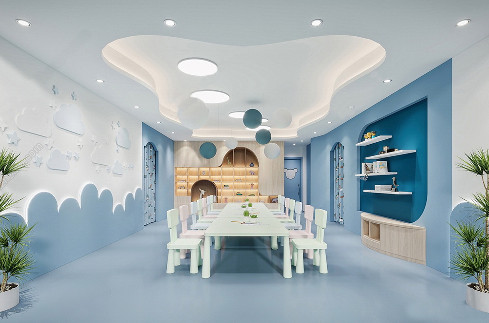 本案幼兒園設(shè)計走向開放,空間設(shè)計突出趣味性,設(shè)計師注重空間的運(yùn)用,精于燈光營造室內(nèi)氣氛,運(yùn)用現(xiàn)代手法與傳統(tǒng)元素融合引入室內(nèi)裝飾,注重材料的選擇,注環(huán)保的理念,發(fā)揮了主題設(shè)計的靈感,構(gòu)成藝術(shù)的主體,園舍柔和的色彩、適齡的布置都會減少幼兒入園焦慮、給幼兒以安全、溫馨的滿足感。