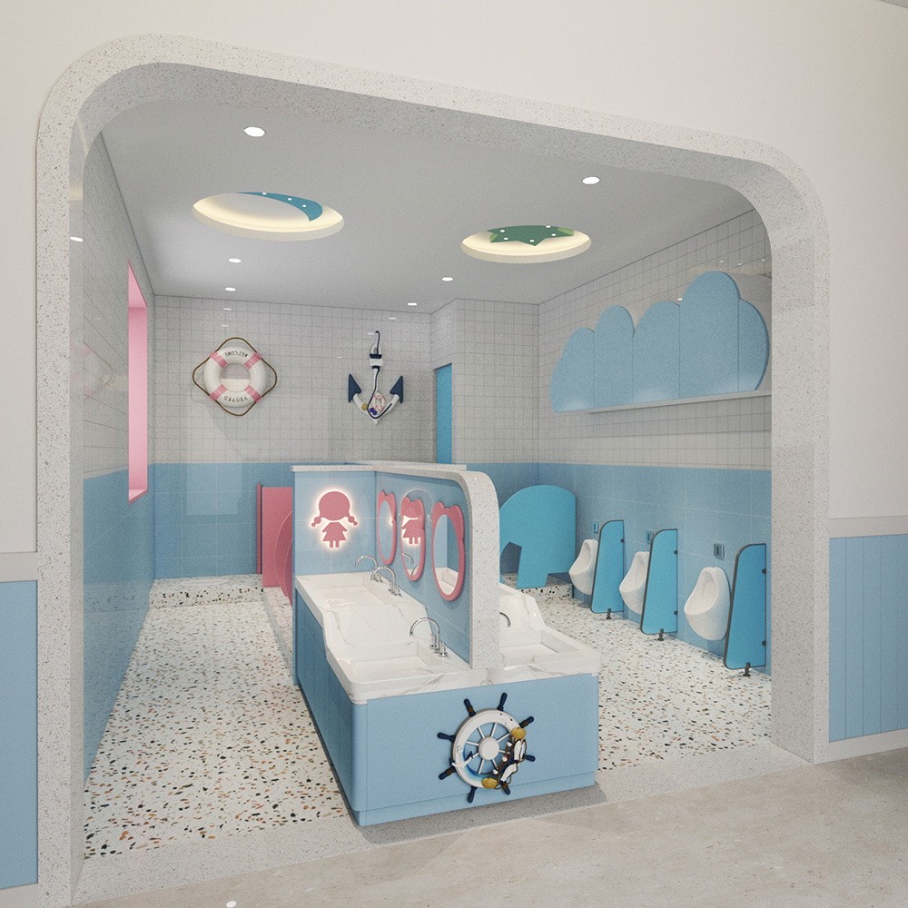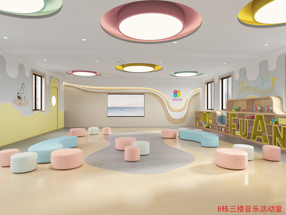 原建筑體為騎樓結(jié)構(gòu),本案根據(jù)現(xiàn)狀作深化設(shè)計,騎樓作為一種典型的外廊式建筑物,結(jié)構(gòu)共分三段:下段為約寬為4米的走廊列柱、中段為樓層、上段為檐口或山花;正方的一面在各層窗臺以下的墻面或檐口窗楣處大多都有豐富的裝飾花紋或淺浮雕!設(shè)計通過古堡的風(fēng)格對外立面進行美化處理,讓整個建筑重新賦予活力,讓幼兒園成為多彩繽紛的童話世界。對于室內(nèi)的教室各自做主題方案,讓每個空間都充滿童趣與想象力,讓每個孩子在快樂無憂的環(huán)境中成長學(xué)習(xí)