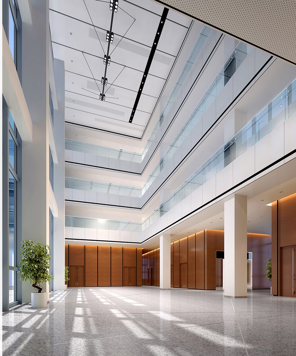 為了在設(shè)計(jì)中體現(xiàn)出與徐工集團(tuán)的企業(yè)文化相呼應(yīng),又能給人留下深刻印象,設(shè)計(jì)從建筑的造型上提煉元素;通過(guò)從幕墻緊向線條進(jìn)行演化,并運(yùn)用室內(nèi)裝飾上,貫穿于不同的空間區(qū)域,讓室內(nèi)外進(jìn)行有機(jī)結(jié)合,產(chǎn)生了美妙的韻律感與統(tǒng)一性;視覺(jué)空間高端大氣又簡(jiǎn)約時(shí)尚