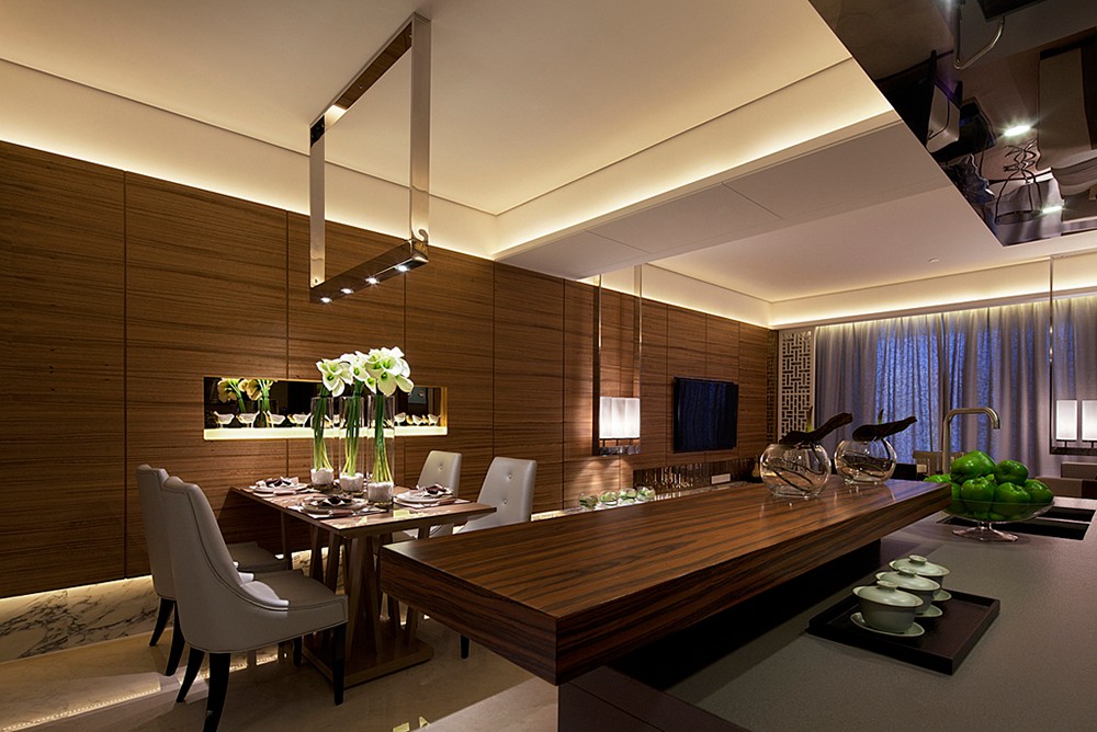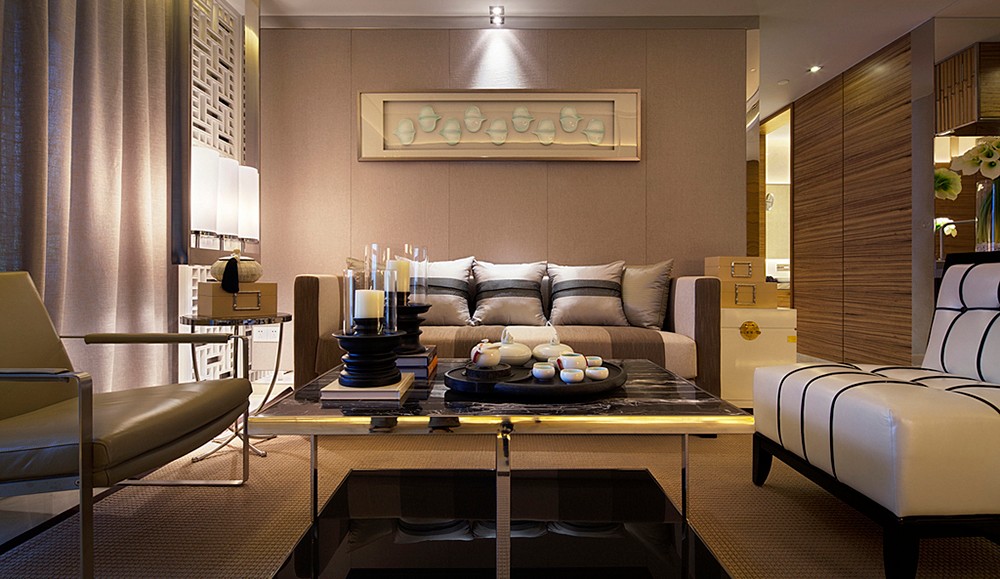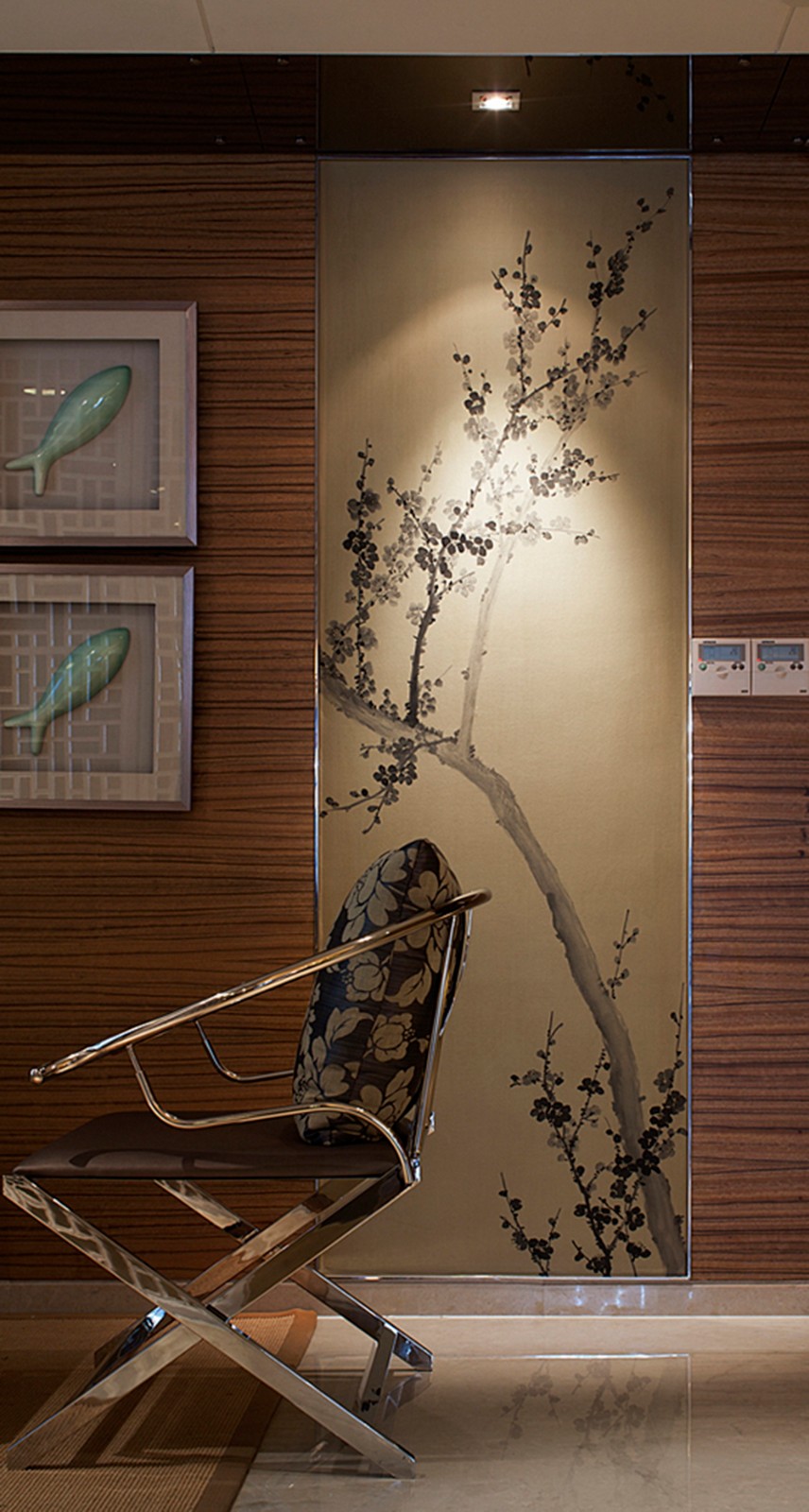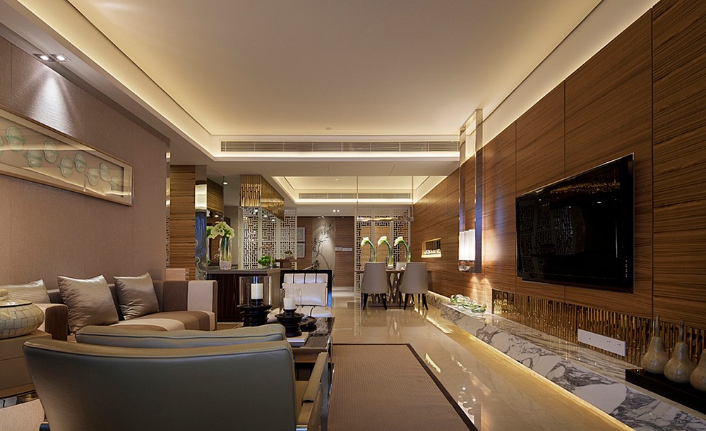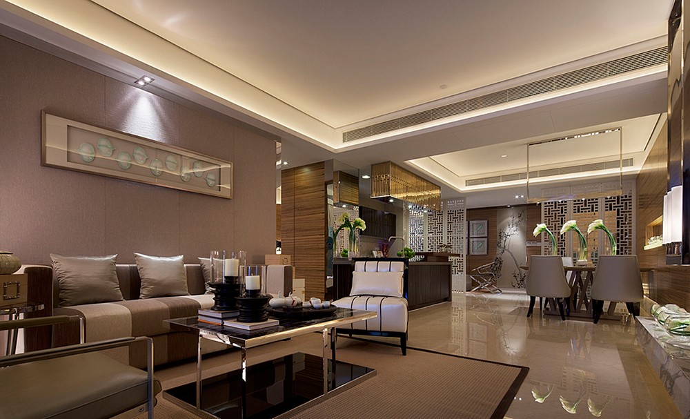 本案采用的是新中式風格,此風格舍棄浮華,強調造型簡單、裝飾有度。設計師在整體家居設計中,提取了傳統(tǒng)中式家居韻味,又融入了現(xiàn)代生活符號,合理的搭配及完美的布局,讓傳統(tǒng)與時尚并存。同時,設計師用穿梭往返的手法,解釋著整個空間的嫵媚,硬朗的硬裝與優(yōu)雅溫柔的配飾碰撞,從另一個角度詮釋了家的含義。在這里,屏風、字畫、古玩、瓷器等的裝飾點綴,無不透露著空間里濃郁的傳統(tǒng)東方情調,在感受中國元素的同時,又在現(xiàn)代的材質中回歸了當下愜意的生活。傳統(tǒng)與現(xiàn)代兩元素的糅合,簡約而不簡單、韻味十足又不乏實用性,這是業(yè)主對此空間最大的要求。