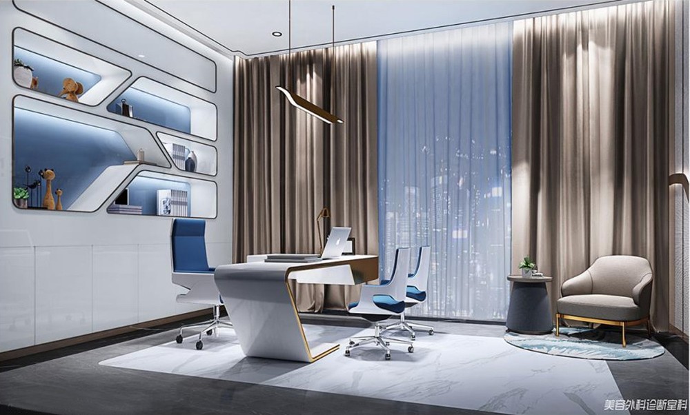 本案采用創(chuàng)意流線充分展示了柔和之美,同時用異形設計與空間完美的有機結合,通過幕墻線條進行裝飾,讓設計增添想象力,室內的雅致與體面保留了醫(yī)美行業(yè)的精髓所在,細膩流暢的表現(xiàn)手法,表達了企業(yè)的專注與精湛